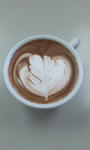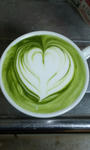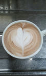 ミルクを注ぐ→多分対流してる→ハートのため深く注ぐ→あ、やばい奥にやっちゃった→どうする?このままリーフに挑戦するか?→でもハートのつもりだから振りは少なめだし→また手前に引いちゃったよ~