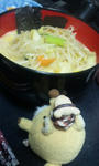 うまかっちゃんの野菜炒め、卵、海苔、水餃子乗せ!