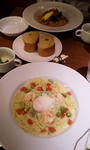 ガーリックトーストとエビとアボカドのカルボナーラ(≧∇≦)