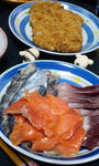 残業後、ドトールで待ち合わせてスーパーで買い物した刺身で晩ご飯♪