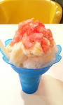 冷やした梨とスイーツフォレストで食べた台湾風かき氷のスイカ。